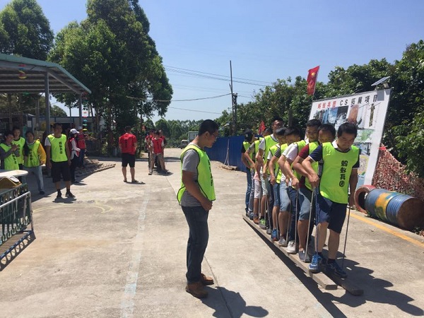 團(tuán)隊(duì)在當(dāng)天上午9點(diǎn)半左右到達(dá)目的地,經(jīng)過短暫的休息后,進(jìn)行了分組團(tuán)隊(duì)建設(shè)及熱身小活動。緊接著,作為活動的第一個項(xiàng)目“無軌列車”隆重登場了,本項(xiàng)目要求團(tuán)隊(duì)成員雙腳分別站在兩塊長約5~8米,安裝有10個提繩的長條木板上并手握提繩,行走一定的距離。由于剛開始大家沒有找到項(xiàng)目的技巧,舉步難行,兩隊(duì)都是東倒西歪,經(jīng)過磨合溝通后,最終順利地完成了比賽。該項(xiàng)目提升了團(tuán)隊(duì)激情及凝聚力。